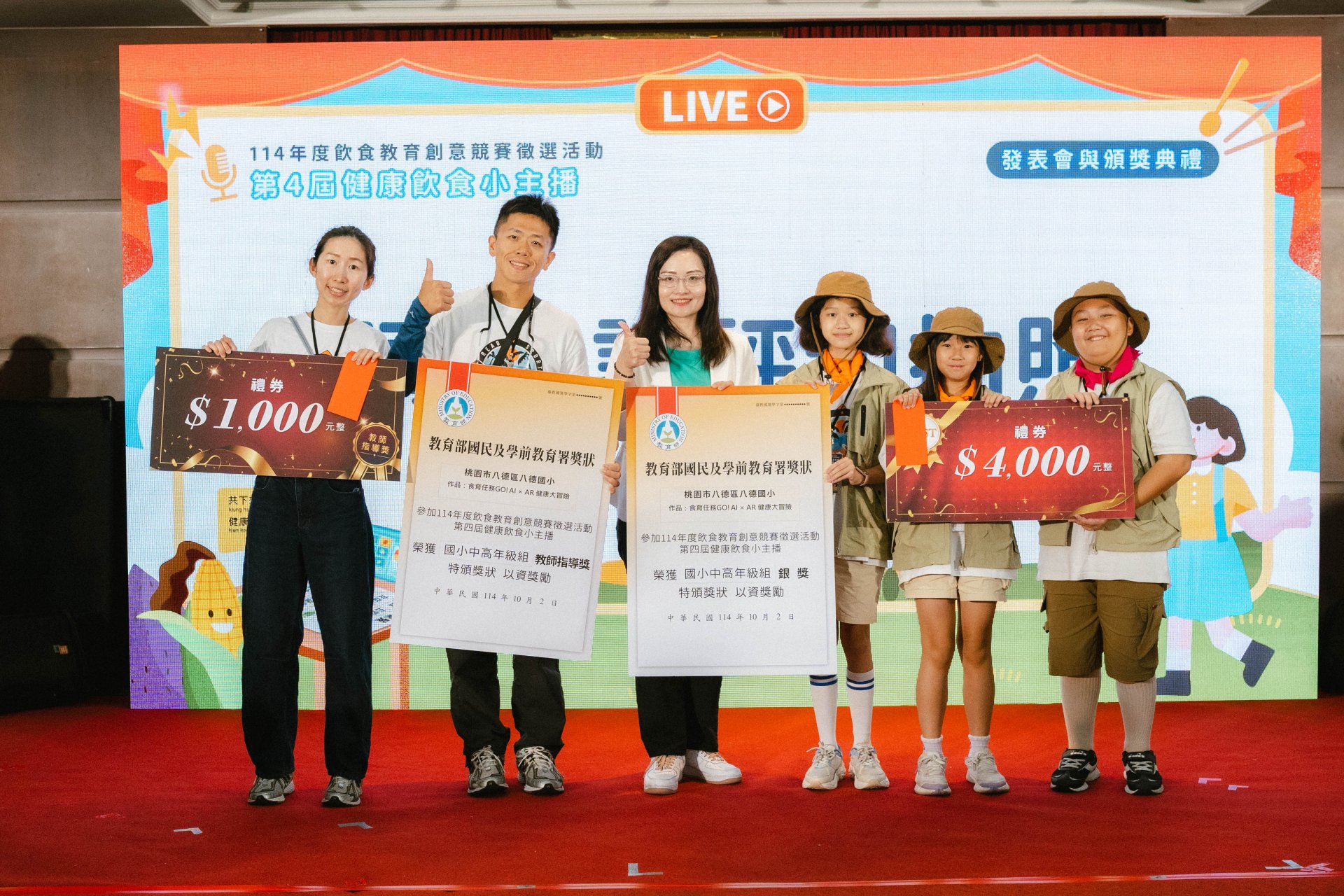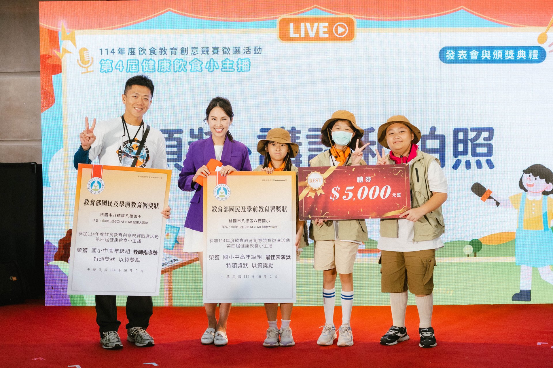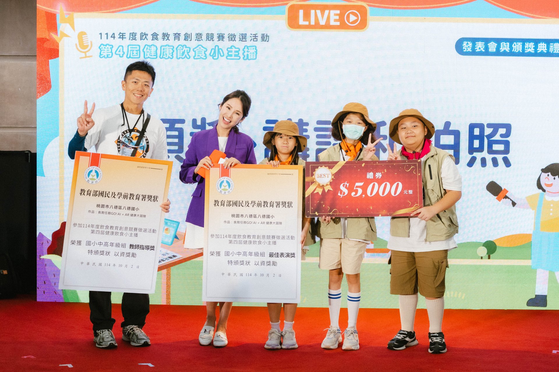 ~狂賀~ 感謝師生共同努力,展現卓越成果,為校爭光! 小小主播大大能量,透過有趣又生動的「食育任務 GO!AI × AR ,健康大冒險」活動,利用智慧和團隊力量不斷地自我挑戰,展現健康,也讓健康成為我們的日常信念! 獲獎班級: 6 年 6 班。 獲獎學生:許栩彥、簡喬均、王瑋緹等 3 位帥氣、甜美小主播。 指導老師:顏兆晞老師、邱怡君老師。