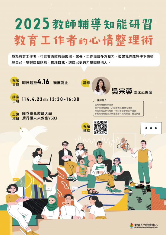 | 2、 | 主題:「教育工作者的心情整理術」 |