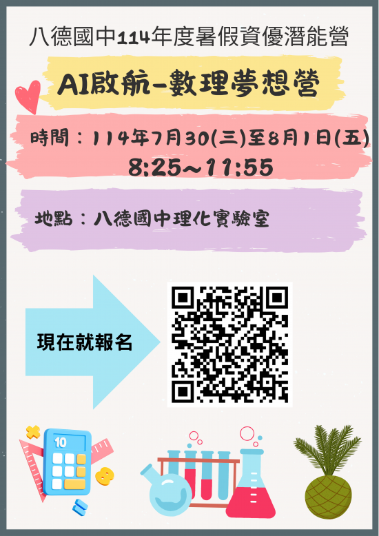 (二) 活動時間: 114 年 07 月 30(星期三)上午至 08 月 01 日(星期五)上午 8 時 25 分至 11 時 45 分,共計 3 個半天。