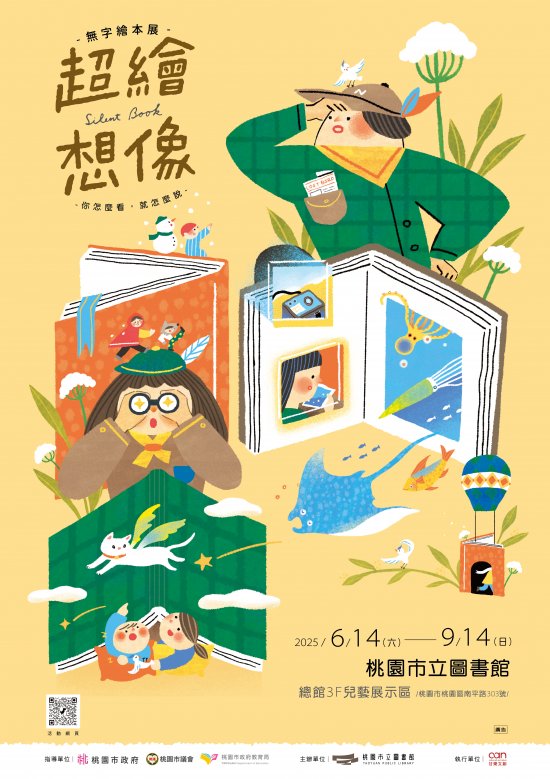 | 一、 | 桃園市立圖書館邀您一同打開圖像閱讀的無限可能,以無字繪本為主題,認識國際知名無字繪本作家及作品,從觀察圖像到創造故事,帶領親子跨越文字的限制,憑藉觀察力與想像力,學會尋找線索了解故事的敘事發展。本活動除展覽外,精彩內容還包含 2 場繪本講座、 3 場大型互動演出及 23 場親子創作體驗。 |