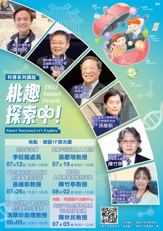 | 主旨: | 有關本市「2025 年 Smart Peach 桃趣探索中!」-國中小暑期科普營隊系列活動,請貴校協助公告周知並鼓勵學生及家長踴躍報名參加,請查照。 |