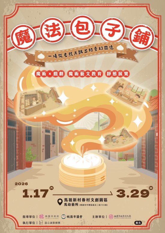 | 主旨: | 檢送本局 115 年度「馬幼有藝思」藝術沃土計畫:《魔法包子鋪:一場從老照片飄出的奇幻回憶》活動資訊,請協助宣傳並公告周知,請查照。 |