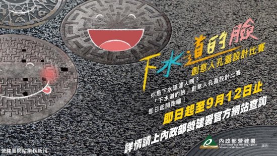 一、為推廣並建立民眾對於下水道建設的認識與了解,本署委託民視文化事業股份有限公司辦理「下水道的臉創意人孔設計比賽」,從 110 年 8 月 16 日至 110 年 9 月 12 日進行徵件,希望藉由下水道「人孔蓋—下水道的臉」作為主題,透過針對台灣民眾進行徵件比賽,以期在設計與創意中認識下水道建設並翻轉對下水道印象並能更認識下水道建設。