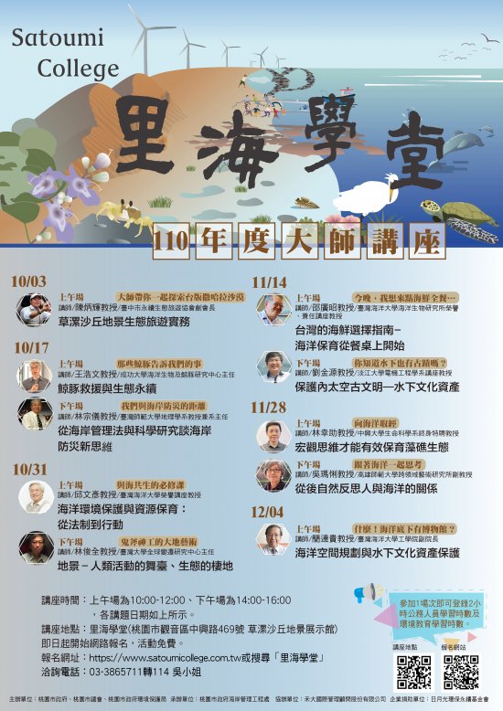 二、為提升本市公民海洋意識、傳遞正確的海洋知識,本府海岸管理工程處開辦里海學堂,並邀請各領域專家學者開設海洋相關專題講座,以淺顯易懂的方式帶領民眾認識海洋。