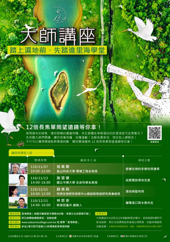 (四)第 4 場: 110 年 12 月 11 日(星期六)下午 2 時至 4 時,蘭陽溪口與水鳥共生,新南田董米創辦兼負責人林經理哲安主講。