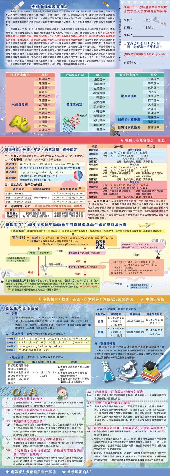 (3) 創造能力資優鑑定:初選 111 年 3 月 6 日(星期日);複選 111 年 5 月 8 日(星期日)。