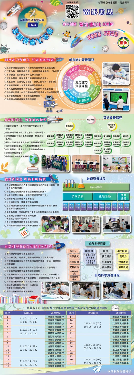 (3) 一律採線上報名,報名網址: https://www.giftedness.tyc.edu.tw 。