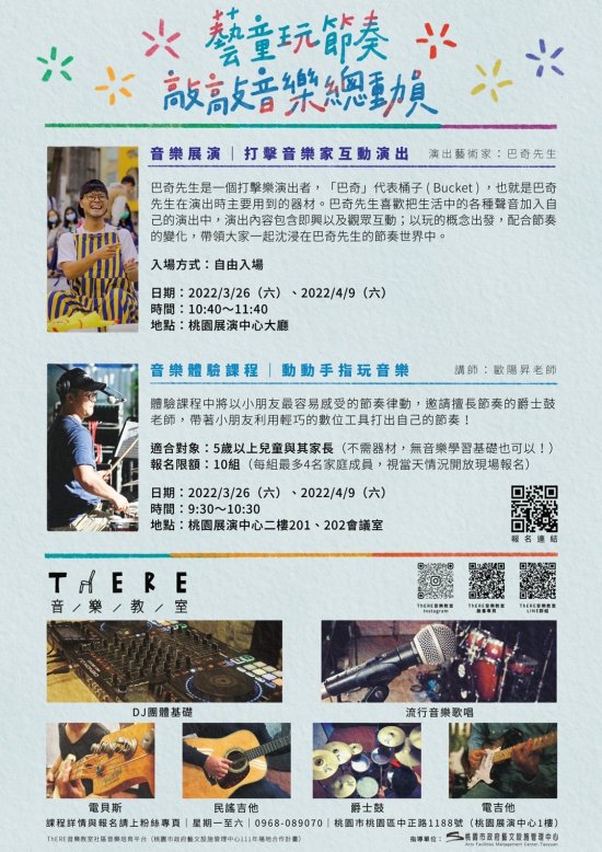 【轉知】2022桃園兒童藝術節館舍系列活動《藝童玩節奏-敲敲音樂總動員》