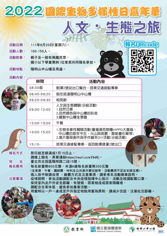 (一) 活動時間:本(111)年 8 月 20 日(星期六)9:20~15:00 。