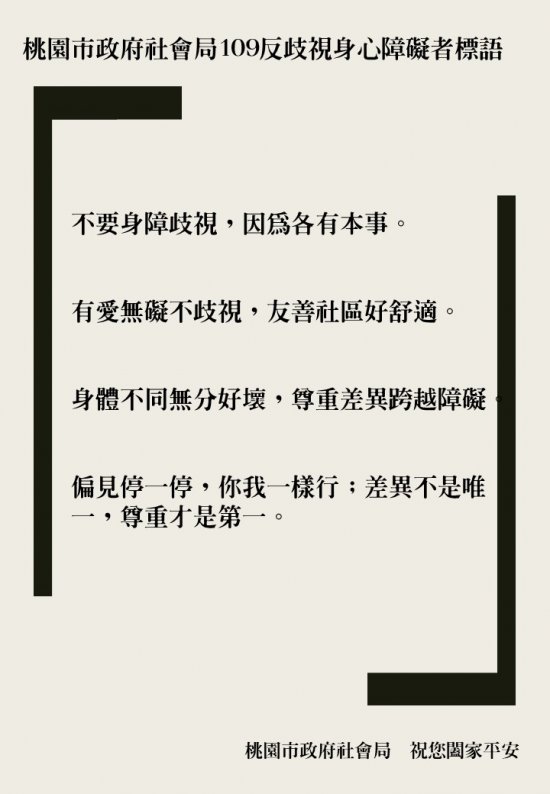 桃園市政府社會局109反歧視身心障礙者標語