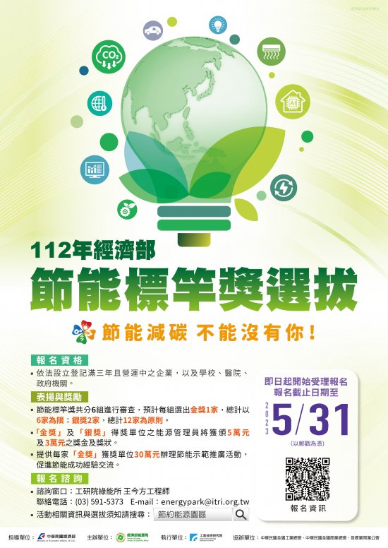 主旨: 函轉經濟部能源局委託財團法人工業技術研究院辦理「112 年經濟部節能標竿獎表揚活動」資料 1 份,詳如說明,請查照。