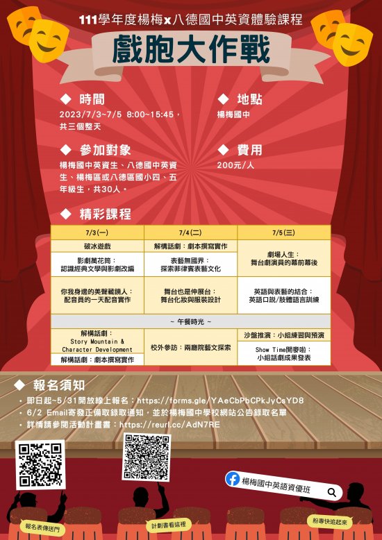 (二) 辦理地點:楊梅國中(桃園市楊梅區校前路 149 號)