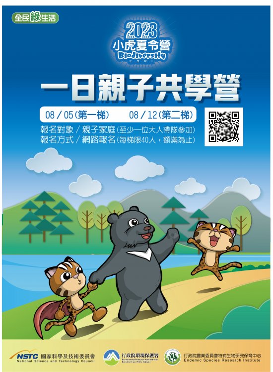 主旨: 函轉行政院農業委員會特有生物研究保育中心將於 8 月暑假期間辦理 2 梯次「小虎 1 日親子共學營」,詳如說明,請查照。