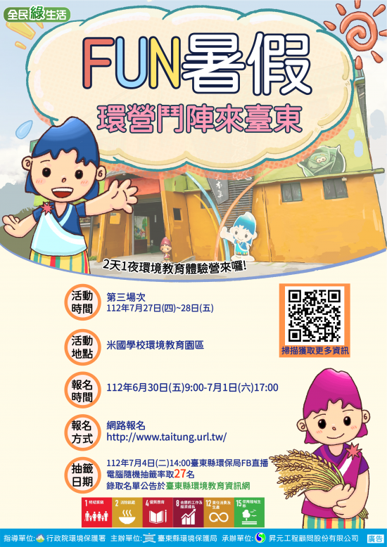 主旨: 函轉臺東縣環境保護局訂於 112 年 7 月 27-28 日辦理「寒(暑)假期環境教育營隊計畫-Fun 暑假 環營逗陣來臺東」第三場次,詳如說明,請查照。
