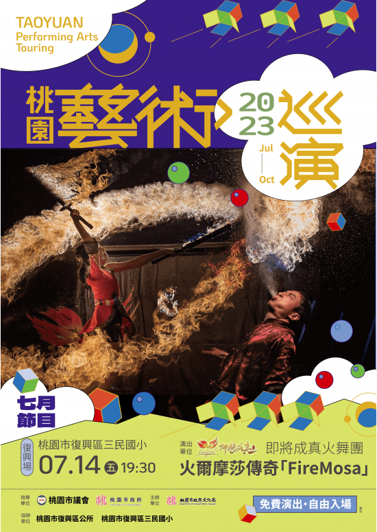 說明: 一、活動預定於 112 年 7 月 14 日(星期五)晚間 7 時 30 分假復興區 三民國小(桃園市復興區三民里 11 鄰 57 號)辦理。 二、檢附本場次活動 EDM 、節目內容及活動宣傳文字。