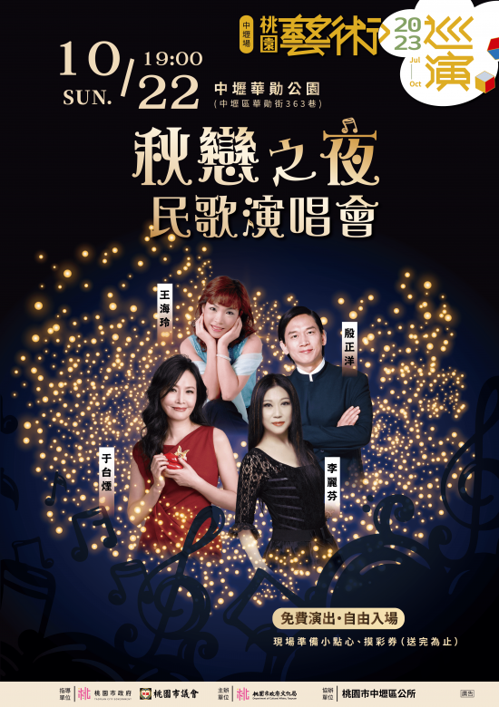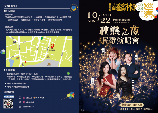 主旨:桃園市政府文化局「2023桃園藝術巡演《秋戀之夜》民歌演唱會」活動