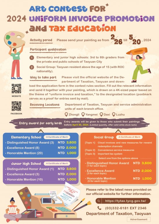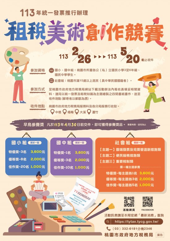 一、依據桃園市政府地方稅務局 113 年統一發票推行辦理租稅美術創作競賽計畫辦理。