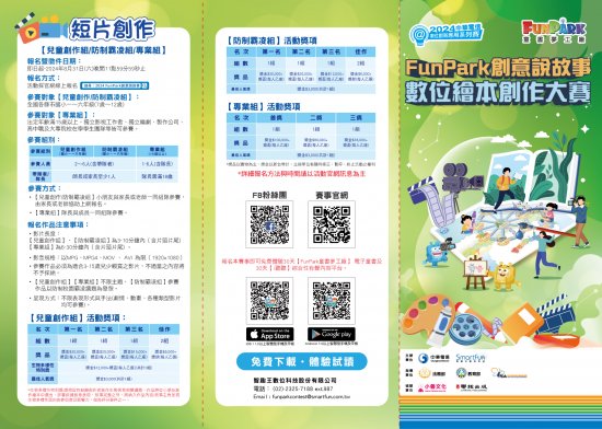 | 主旨: | 函轉法務部結合智趣王數位科技股份有限公司辦理 2024「FunPark 創意說故事-數位繪本創作大賽」,敬請協助宣傳周知,並鼓勵國小師生踴躍報名參加,請查照。 |