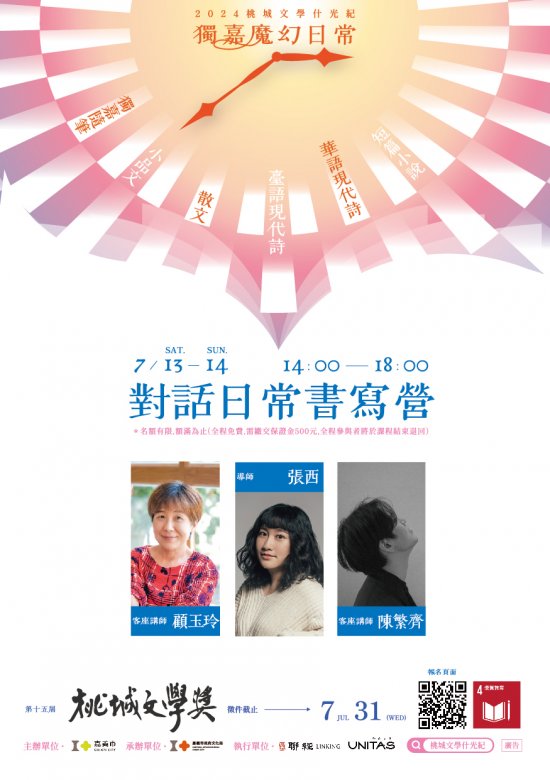 二、本局並於7月辦理1場文學獎推廣活動──「對話日常書寫營」,採線上填寫google表單報名,洽詢電話02-86925588轉5374陳小姐。