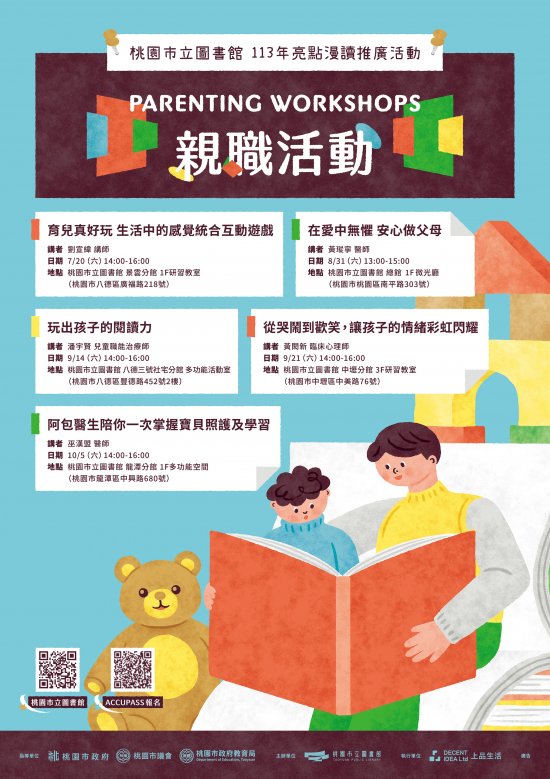 一、為活絡桃園閱讀城市形象,透過創意亮點行銷閱讀推廣,建立全齡化閱讀風氣,本館於今(113)年6月至11月間辦理一系列講座,邀請市民朋友一起走進閱讀時光,開拓生活視野建立多元價值。