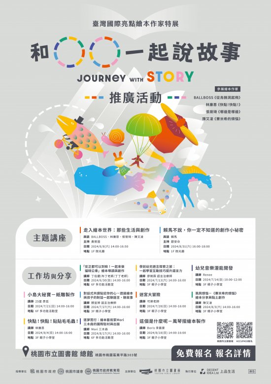 二、旨案活動內容包含「微光會客室」、「親職活動」、「國際臺灣繪本作家特展:和○○一起說故事」及「特展主題講座、工作坊」等各項內容,更多詳情及報名請至本館官網(https://reurl.cc/xaoRqL)查詢。