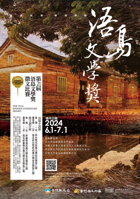 主旨:函轉金門縣文化局「2024第21屆浯島文學獎」長篇小說組及散文創作組徵文活動將於113年7月1日截止,請惠予協助宣傳,並鼓勵踴躍投稿,請查照。