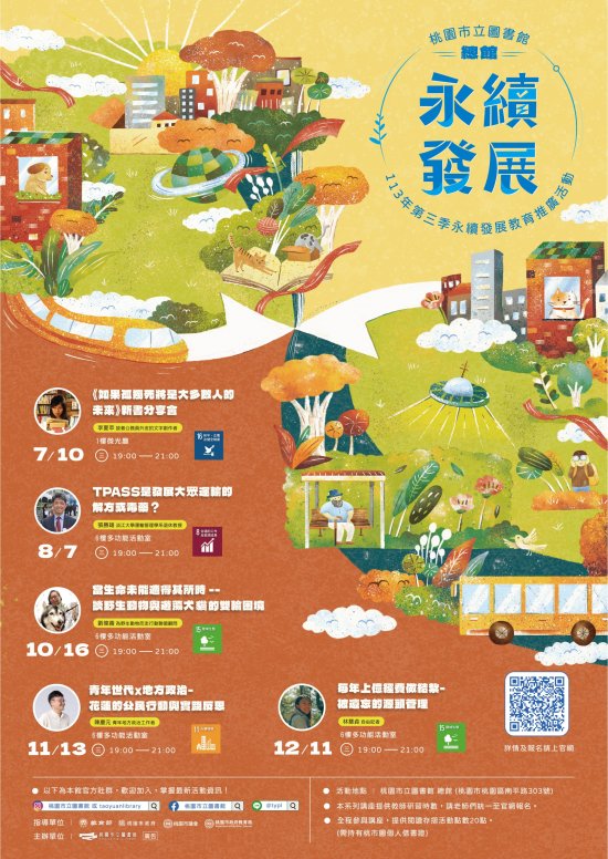 | 主旨: | 檢送本館「總館 113 年第三季永續發展教育推廣活動」海報電子檔,惠請協助並鼓勵所屬同仁及學生踴躍參加,至紉公誼。 |