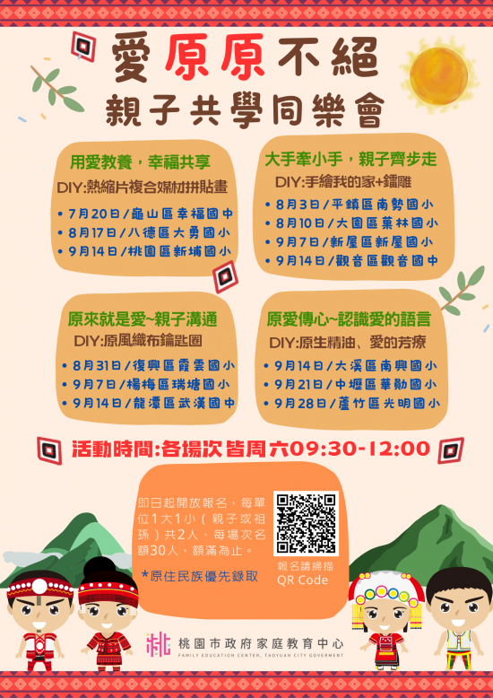 檢附活動海報 1 份,請惠予協助宣傳並鼓勵原住民家庭踴躍參與。