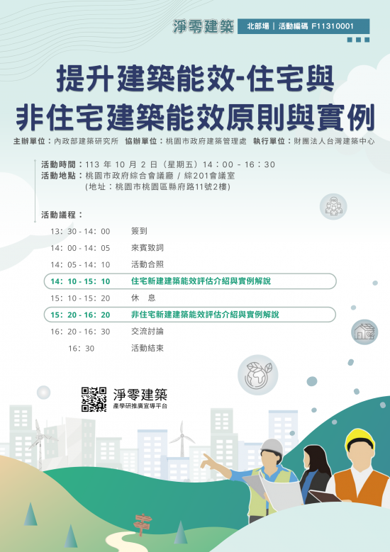 | 主旨: | 轉知內政部建築研究所主辦「淨零建築跨領域人才培訓活動( 3 場次)」之培訓活動一案,詳如說明,請查照。 |