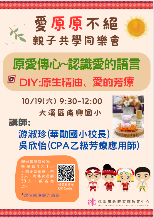 | (四) | 主題:原愛傳心~認識愛的語言+DIY 原生精油、愛的芳療。 |