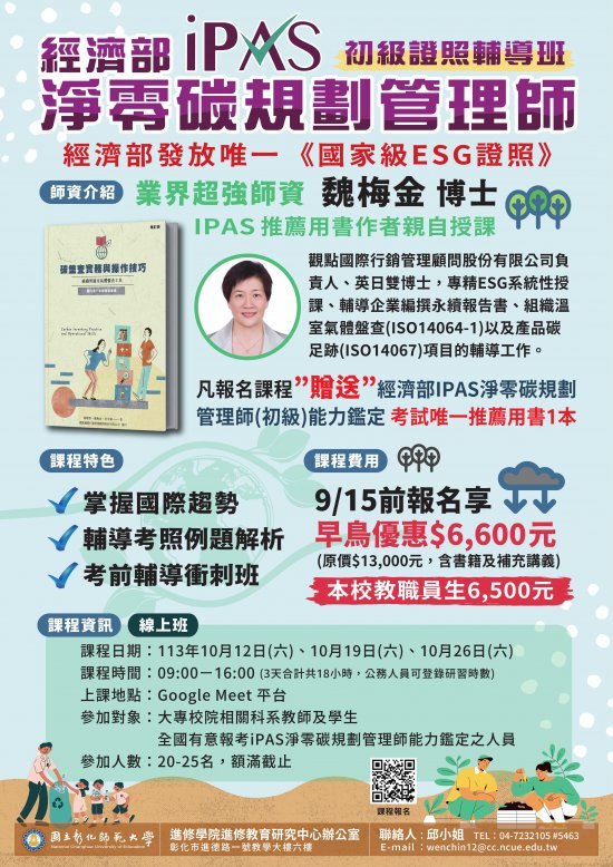 113年iPAS淨零碳規劃管理師(初級)能力鑑定輔導班 (線上班)