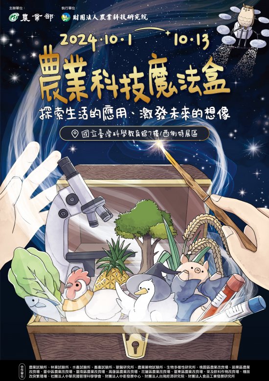 | 二、 | 為鼓勵民眾認識農業科技實務運用情形,該部首度邀集所屬試驗改良場所及相關學校與法人,精選日常生活可見之農業科技研發成果,辦理「農業科技魔法盒」科普特展。 |