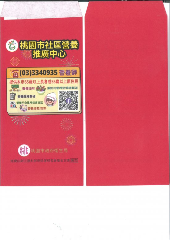 為加強推廣社區營養推廣中心知曉度及服務利用率,提供旨揭宣傳紅包袋,敬請貴單位協助發送及宣導。